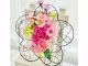 鳥かごの形のベースに、アーティフィシャルフラワー(造花)で飾り付けします。
