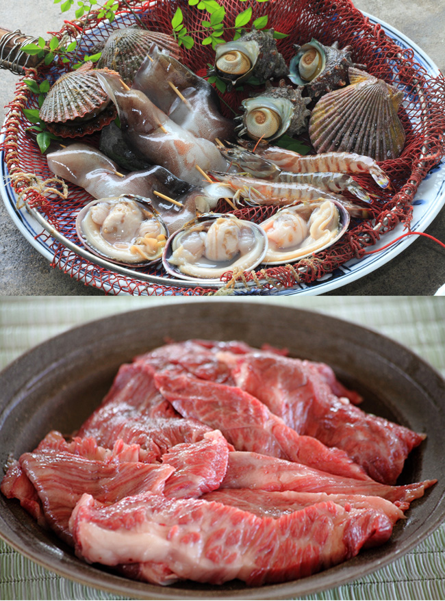 【人気No.1!】【定番プラン】伊勢志摩の海鮮5点+国産牛・豚+季節の野菜セット