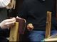 親子で革細工体験中。