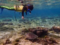 子供を連れて久しぶりのシュノーケリングでしたが、丁寧に教えて下さり安心しました。ウミガメにも会え、綺麗なお魚やサンゴも沢山見ることができました。私は浮き輪に掴まって引っ張って貰いましたが、子供は1人で泳いでいてその姿に感激しました。笑
