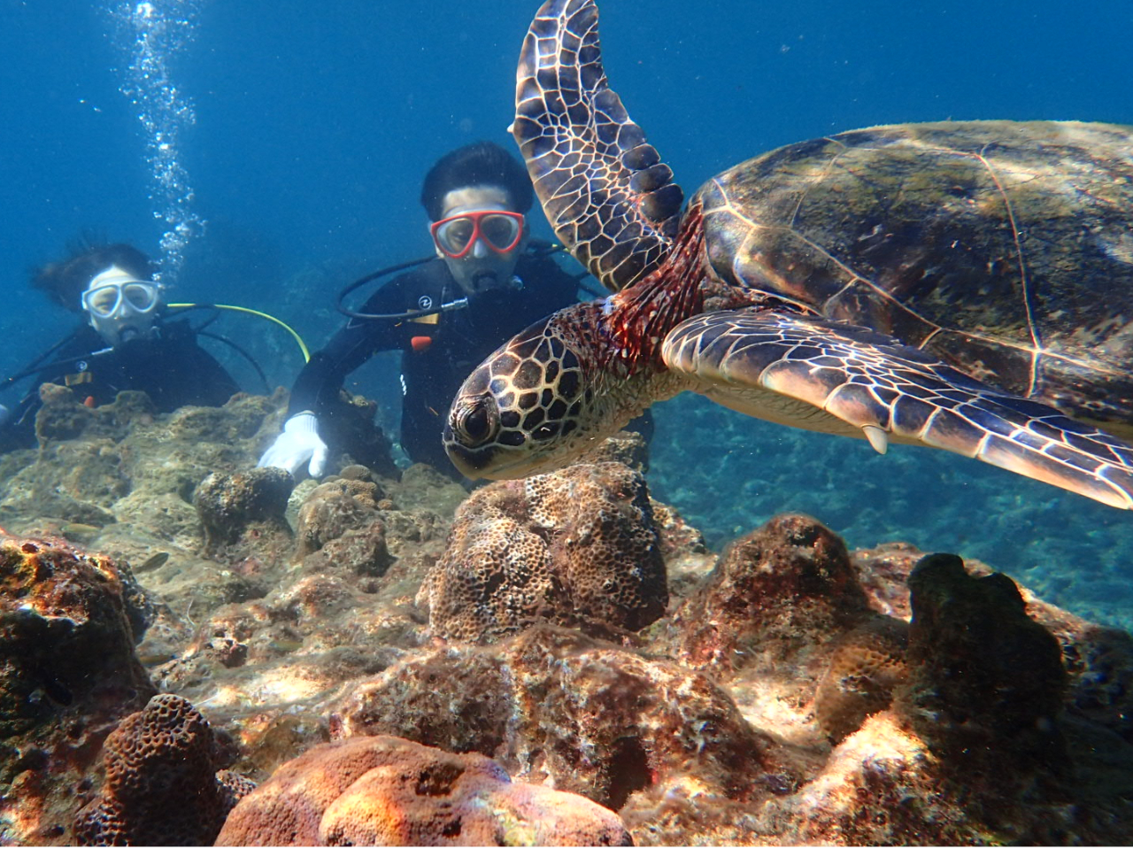 ウミガメ遭遇率の高いポイントでのんびり潜ります!