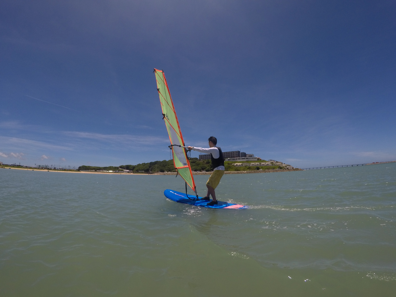 沖縄の海の上ではじめてのウィンドサーフィン体験!!思い出作りにぜひ☆
