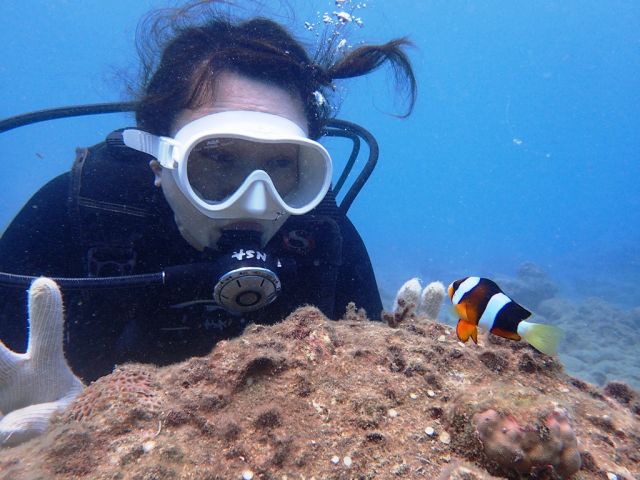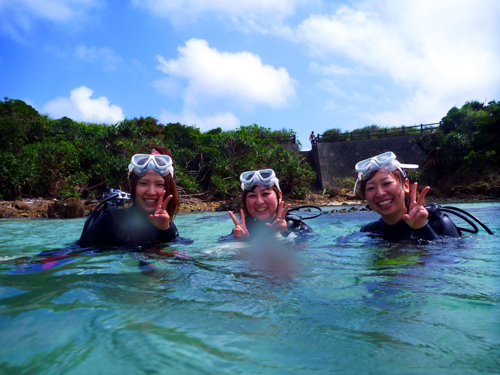 遠浅で穏やかなビーチから、ダイビングに挑戦してみませんか?ビーチからエントリーするので、足のつく場所でしっかり練習をしてからスタートできます。またボートとは違い、緩やかな斜面で少しづつ潜りますので耳抜きもしやすくなります。ライセンスを持ったダイバーも潜るほど生物が多いビーチで行うので、浅い場所からすぐにお魚達と出会えます!