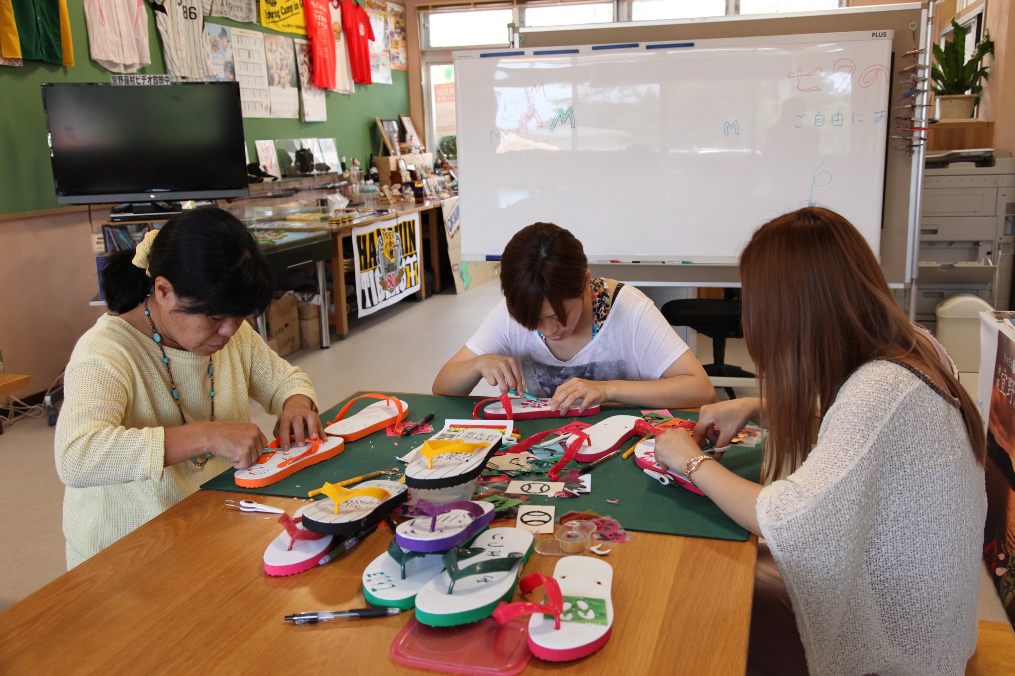 既存のビーチサンダルとは違い、立体的な質感が特徴の「島ぞうり」表面に名前や絵柄を彫り、オリジナルの島ぞうりで個性を表現できます。