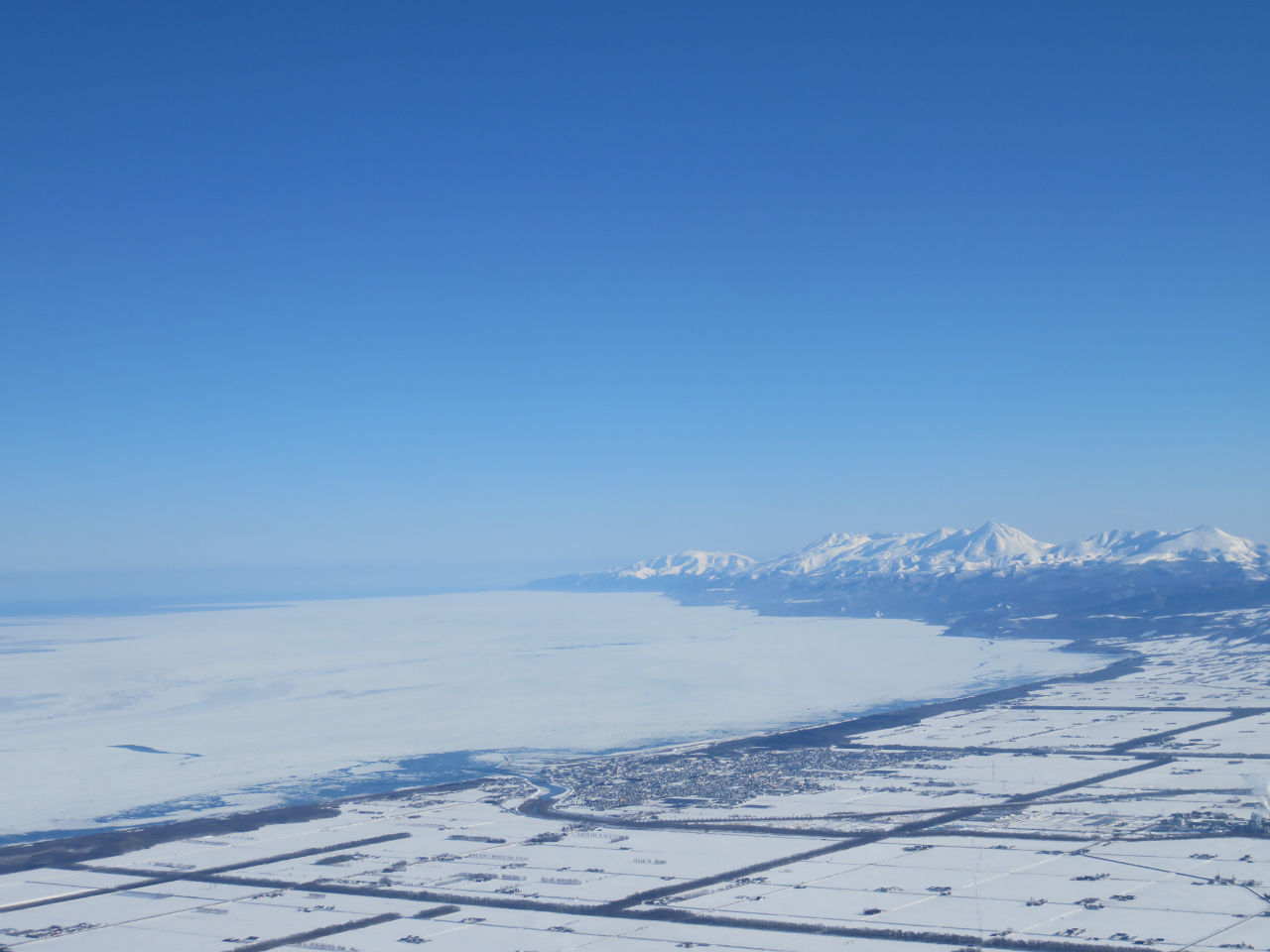 流氷のほか、斜里岳や羅臼岳、摩周岳などの厳冬期の山々を空から眺めることもできます。