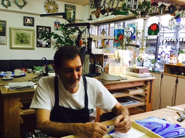 現代造形美術の巨匠Sante Pizzol氏に師事、ステンドグラスを学ぶ。