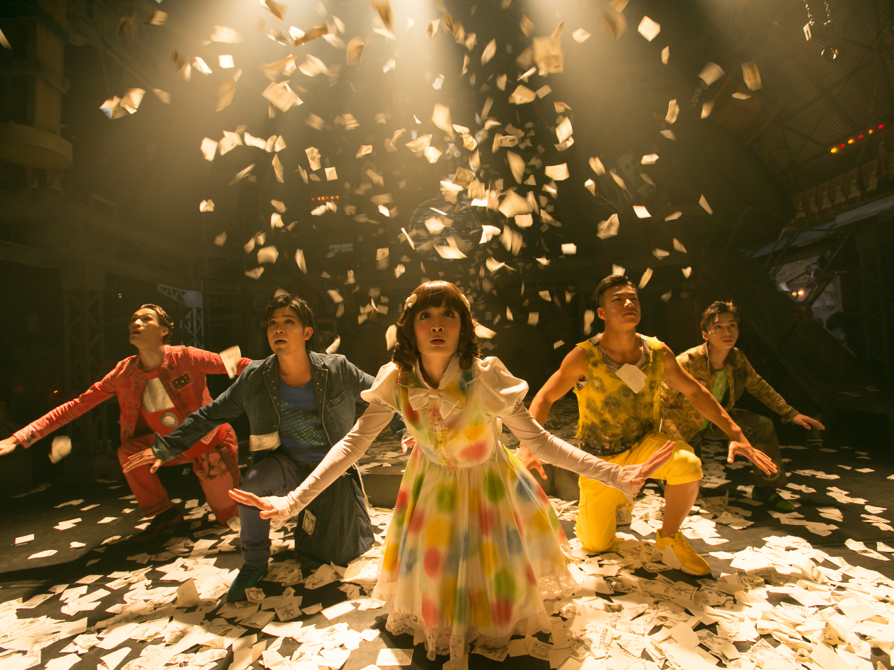 巨大ファンが大暴走すると、大量の紙が飛んできてあたりが一面真っ白に。