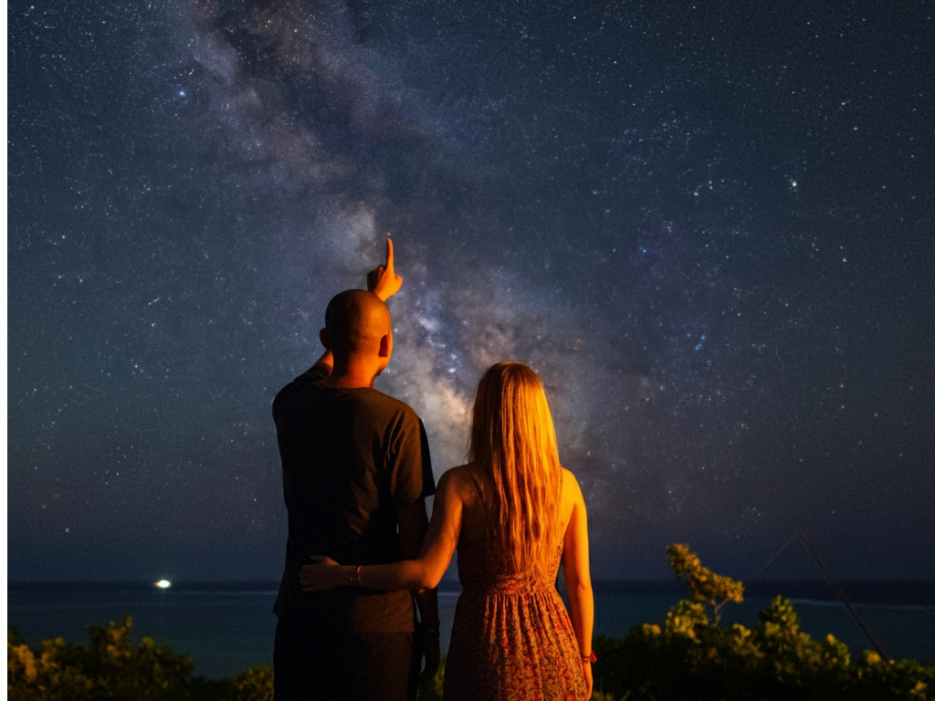 星や宇宙に詳しいガイドによる、天然の星空を使っての解説や写真撮影は