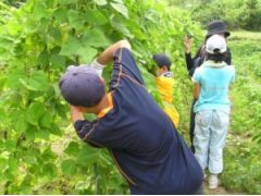 家族連れでいろいろな野菜の収穫を楽しんでいただこうと言う企画に、今までにたくさんの方が畑を訪れました。毎年6月から11月まで常時受け付けています。皆さんもぜひご利用ください。