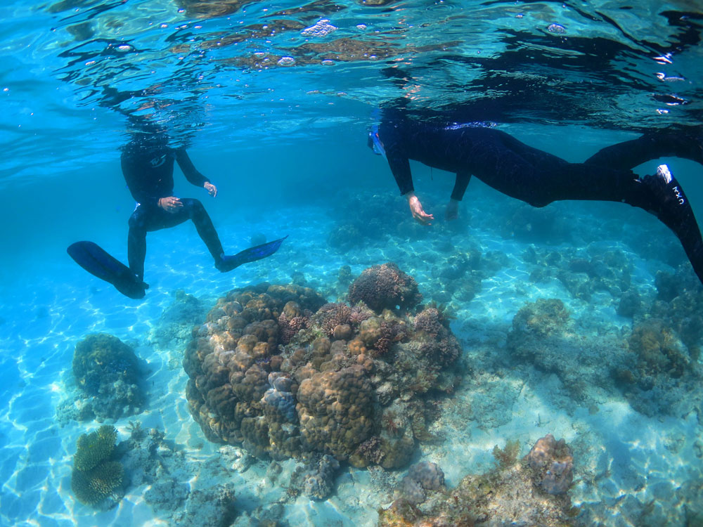 ビーチからシュノーケルでカメを観察するコース、サンゴや魚を観察するコース