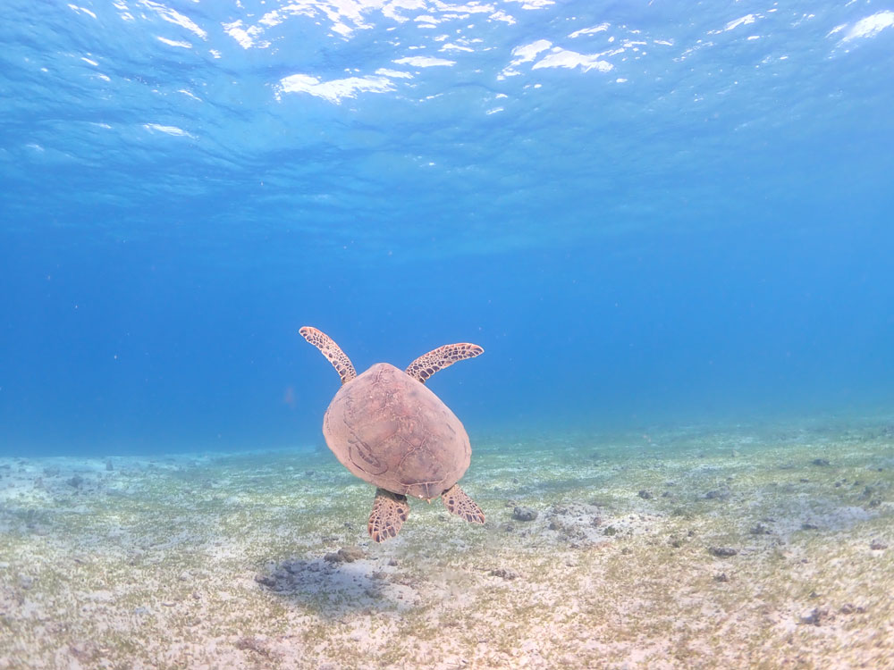 ウミガメ遭遇率96%以上ビーチシュノーケルでウミカメと出会えます。