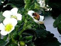 かわいいミツバチがハウス内をお散歩しています。マーヤの受粉作業も見れますよ!