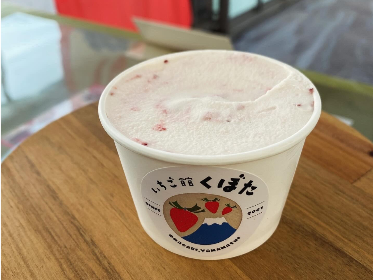2023年スタート♪富士河口湖の人気ジェラート専門店「Gelateria Angela」さんのミルクジェラートと、いちご館窪田のとれたていちごのコラボ”ミルクストロベリージェラート”付きプランです♪