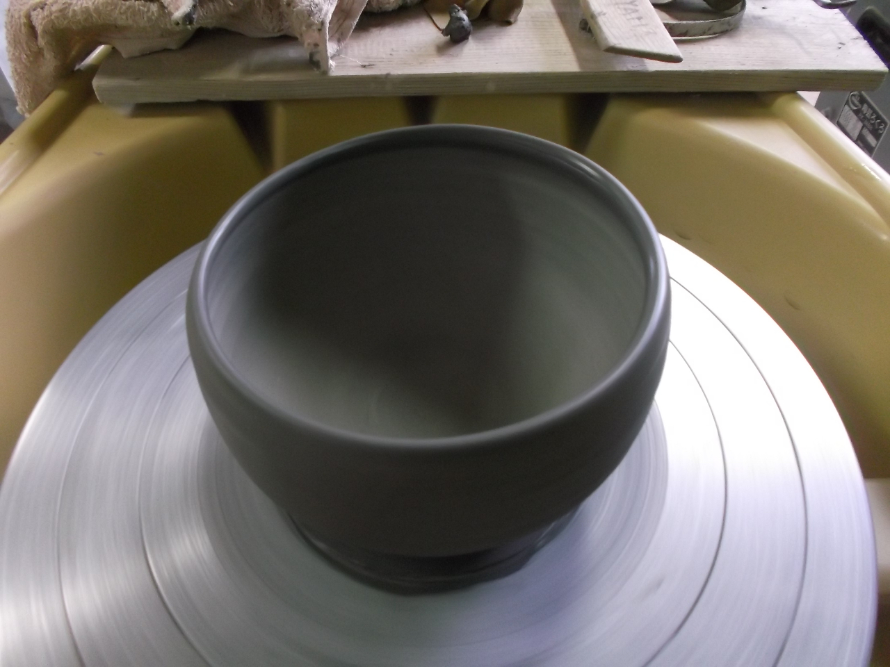 少し乾燥しましたら、高台(底)を削り室内でゆっくり乾燥