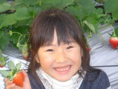 赤いいちごをもぎ取って記念撮影!!!たくさんの思い出を残していってください