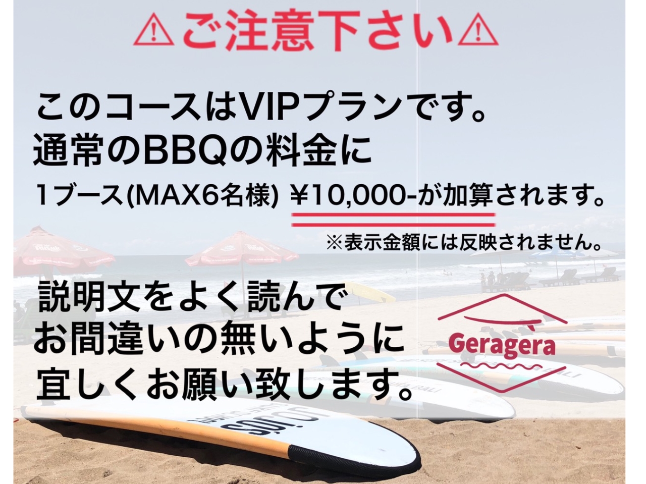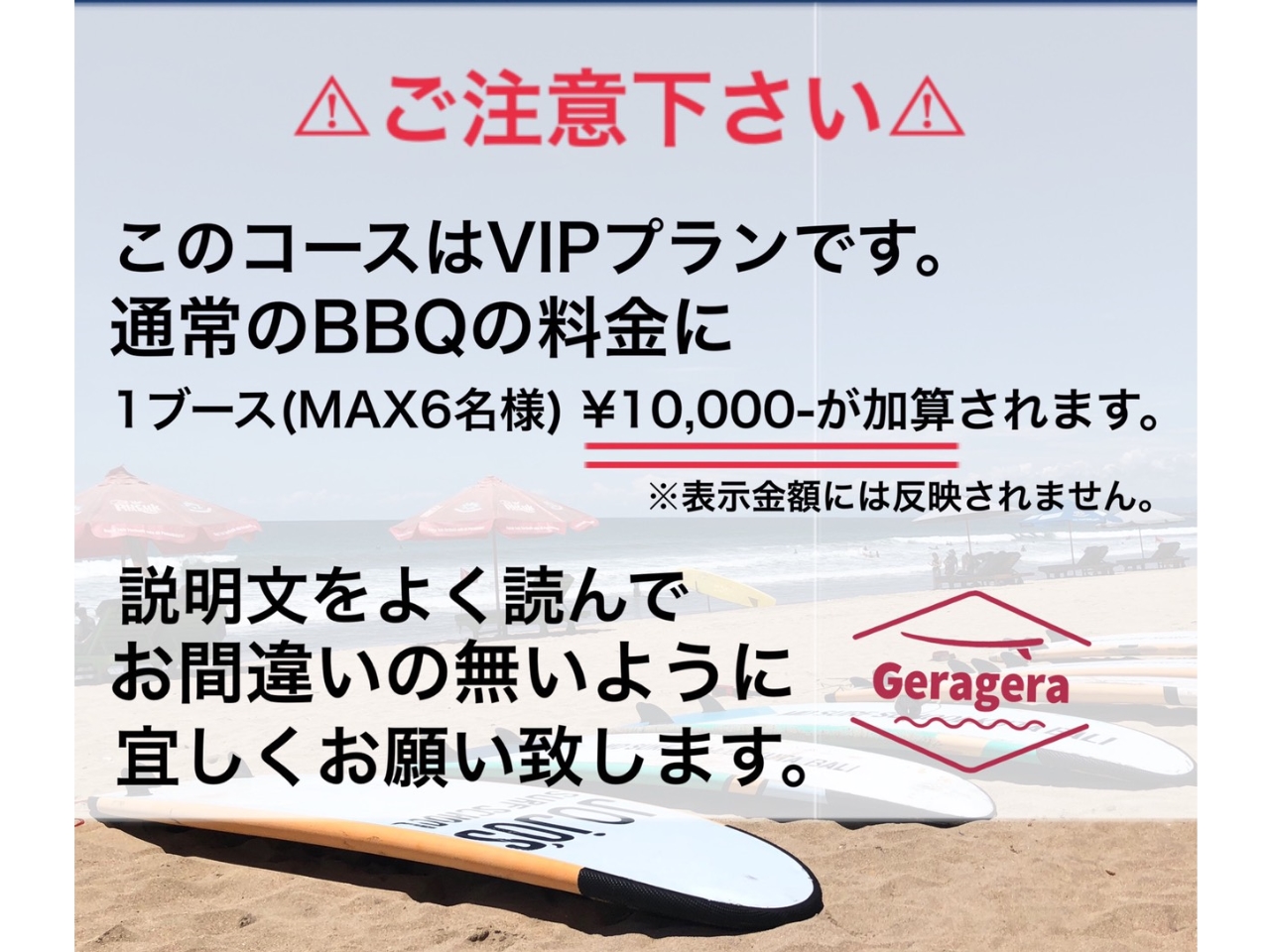 【VIP BBQ PLAN】『食材持ち込みオリジナルコース』