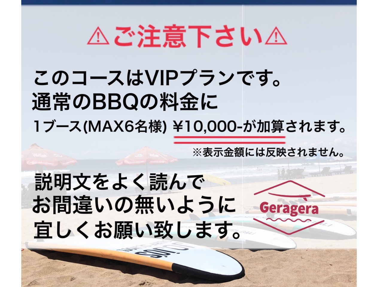 GW・夏季【VIP BBQ PLAN】『食材持ち込みオリジナルコース』