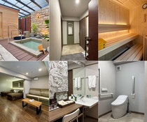 プライベートサウナ完備のお部屋で、水風呂や温泉露天風呂にも手すりを設置。