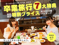 【卒業旅行】学割7大特典!和洋中50種以上&デザートバイキング!お寿司・天ぷら・ミニケーキ・フルーツ