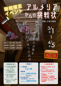 「宝探し&暗号解読イベント」を開催中です(>▽<)