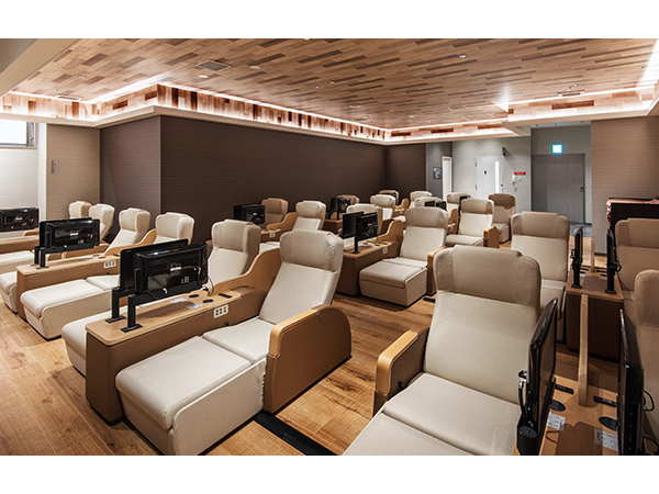プレミアムラウンジ(座席指定・有料リクライニングシート)・VOD付!ワンランク上の寛ぎを。男女共用席30・女性専用席25(3H500円 事前予約不可)