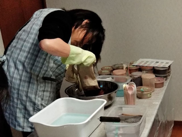 京都川端商店で、完全オーガニックで染める"新万葉染め"を体験します。