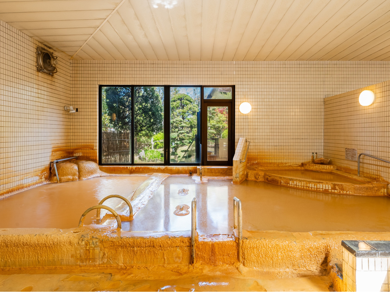 【温泉】天然炭酸温泉の26℃源泉湯と41.5℃加温湯の温冷入浴で温泉パワーを体感してください。ぬる湯や露天風呂・寝湯・サウナなども完備致しております。