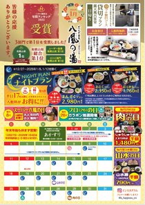 #和歌山県 #かつらぎ町 #かつらぎ温泉八風の湯#八風の湯 #イベントカレンダー #温泉宿 #温泉旅行 #日帰り温泉 #26日はガラポン抽選会 #毎月第3水曜日は山水の日 #29日は肉の日 #2月6日は年に一度の風呂の日