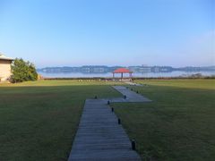 片山津温泉・柴山潟の畔にあるホテルです。源泉地を中心とした旅館・ホテル街からは少し離れた場所にあるので、静かで広々とした環境にあります。ロビーから見る、芝生の広い中庭と柴山潟が美しい。