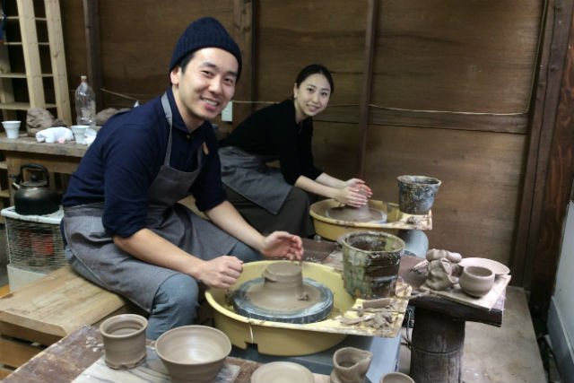 電動ろくろを使う体験で、最初はちょっぴり難しいかもしれませんが、講師がしっかりサポートするので、安心して陶芸家気分を味わってください♪