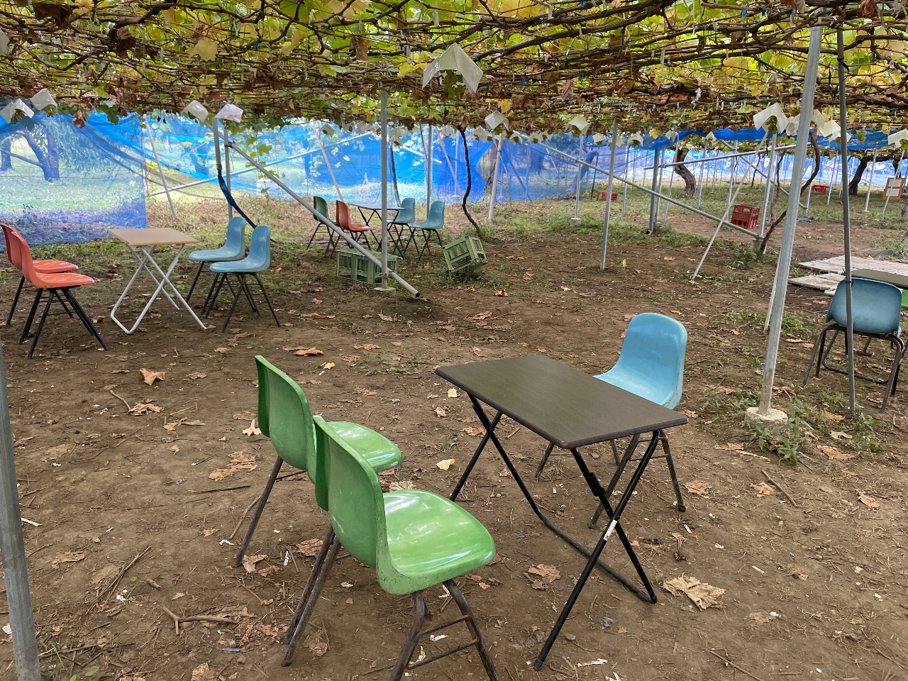 ★【シャインマスカット(ご自身で収穫したもの)+梨またはリンゴ(収穫済)】が食べ放題となります。