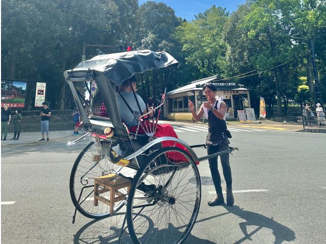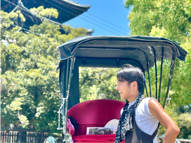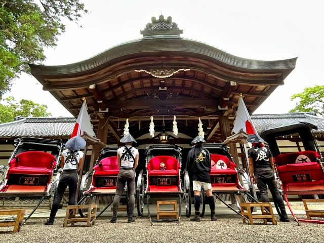 各名所では、ご拝観やガイドもしっかりさせていただきます。歴史が苦手な方でも前のめりになっちゃうくらいの俥夫のご案内はまるで一つのエンターテインメント!!境内の中も一緒にエスコートさせていただきます。もちろん、お写真もばっちり撮影させていただきます!!