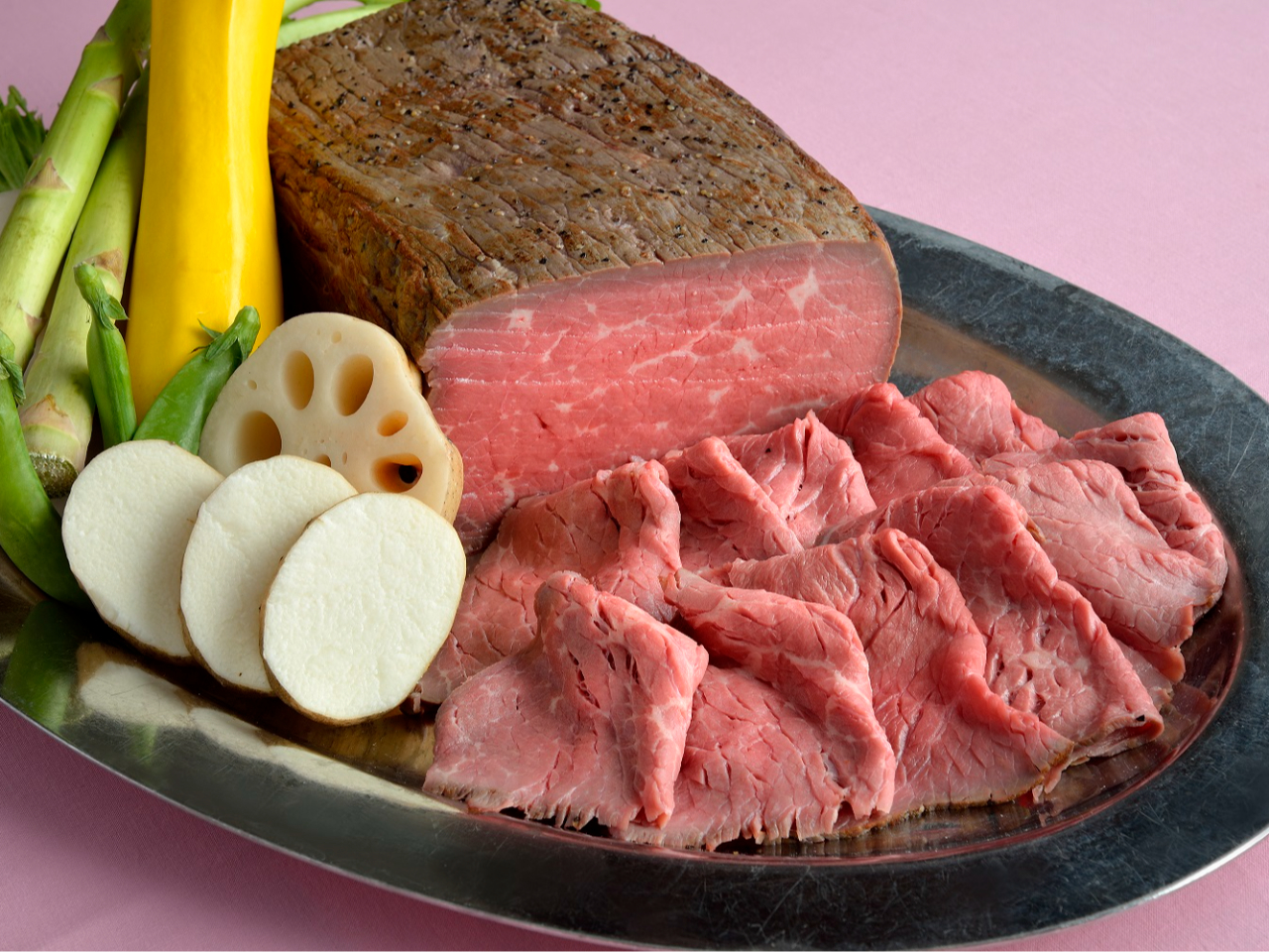 3種のソースで食べ比べの出来るローストビーフをはじめ、