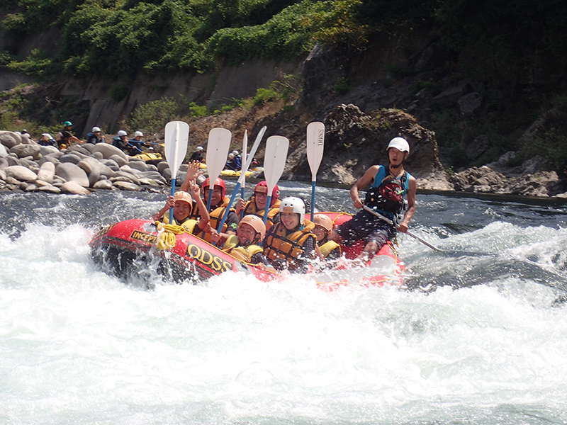 ラフティングは仲間と共にゴムボートで激流に挑み数々のBIGウェーブを