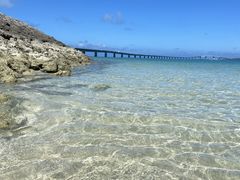 橋の上からの、景色が絶景です。干潮時にだけ現れた海の真ん中の白い砂浜が美しく感度しました。海の青のコントラストが素敵でした。