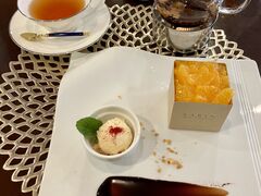 目新しい素敵なキューブ型の数々のケーキから迷いつつ一つを選び、お茶はバラの紅茶にしました。