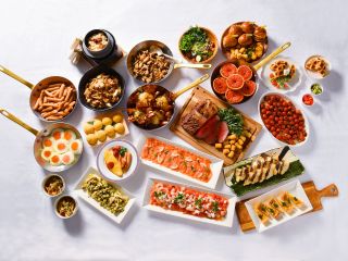 ライブキッチンで揚げたてをお届けする「天ぷら」、旬の味覚を贅沢に取り入れた「冬のスイーツ」、そして自社水耕栽培の野菜や冷製前菜も豊富にご用意。”ショートケーキ”の実演スイーツは時間限定・土日祝日限定!