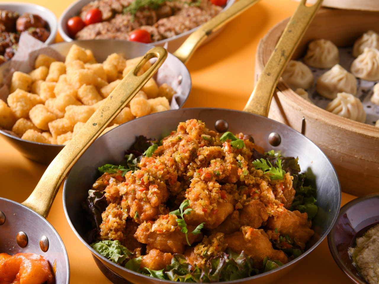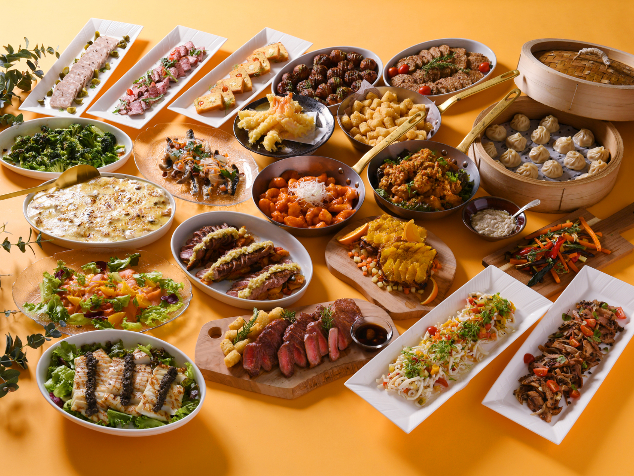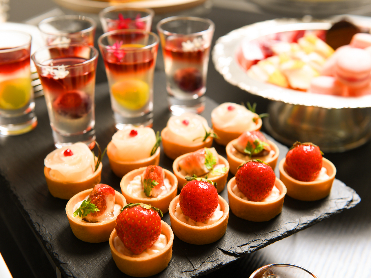 ライブキッチンで揚げたてをお届けする「天ぷら」、旬の味覚を贅沢に取り入れた「冬のスイーツ」、そして自社水耕栽培の野菜や冷製前菜も豊富にご用意。”ショートケーキ”の実演スイーツは時間限定・土日祝日限定!