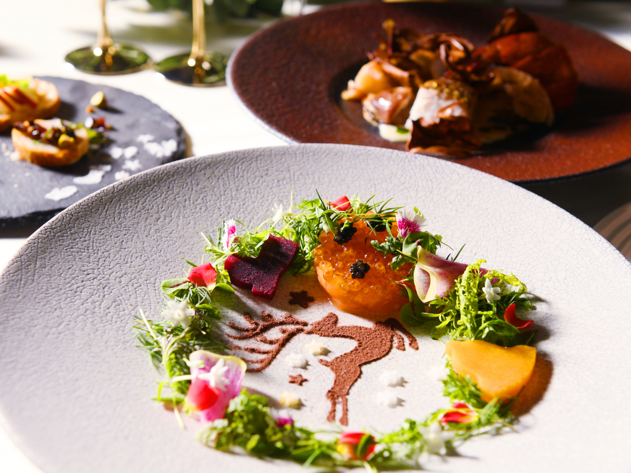 旬の食材に”和 ”のエッセンスを取り入れた新しい切り口でご賞味いただく「イノベーティブフレンチ」。寛ぎと味覚を結び、五感に響く料理・サービスをお愉しみください。