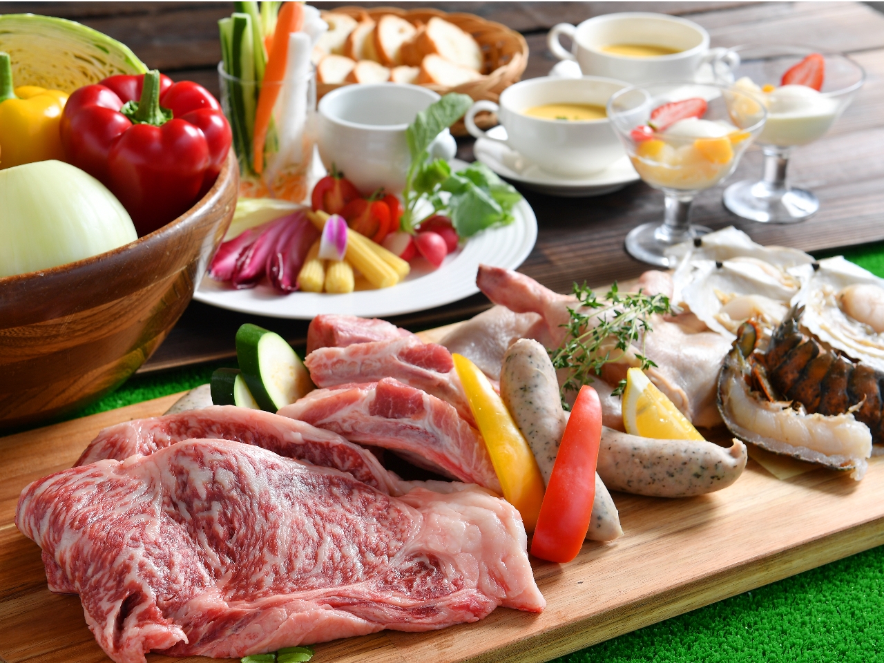 【スカイバーベキューTENKU】お肉も海鮮も楽しめるよくばりプラン〜GRAND-Bコース〜