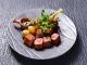 淡路・由良の漁場が黒潮の影響で流れが速く、そこで獲れた魚は良く泳いでいるため「肉厚」。魚を〆る技術は日本一と言われる淡路島の漁師が活〆にした鮮魚と魚介を使用、野菜も淡路・露地物の旬野菜!ご賞味下さい。