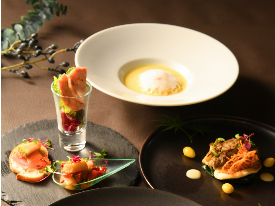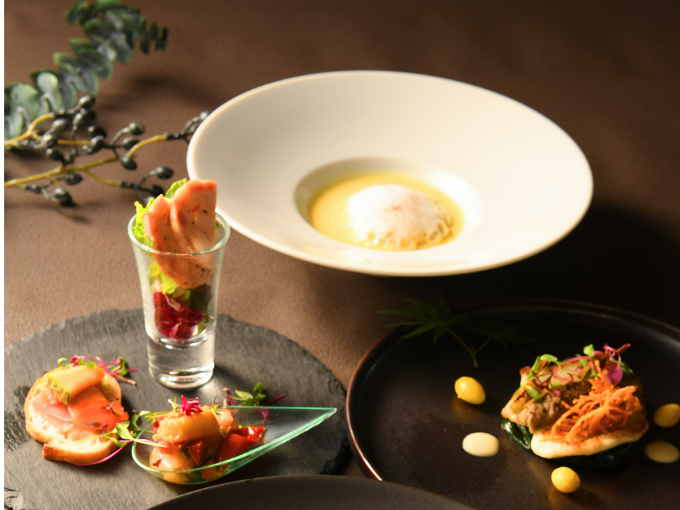 旬の食材に”和 ”のエッセンスを取り入れた新しい切り口でご賞味いただく「イノベーティブフレンチ」。寛ぎと味覚を結び、五感に響く料理・サービスをお愉しみください。