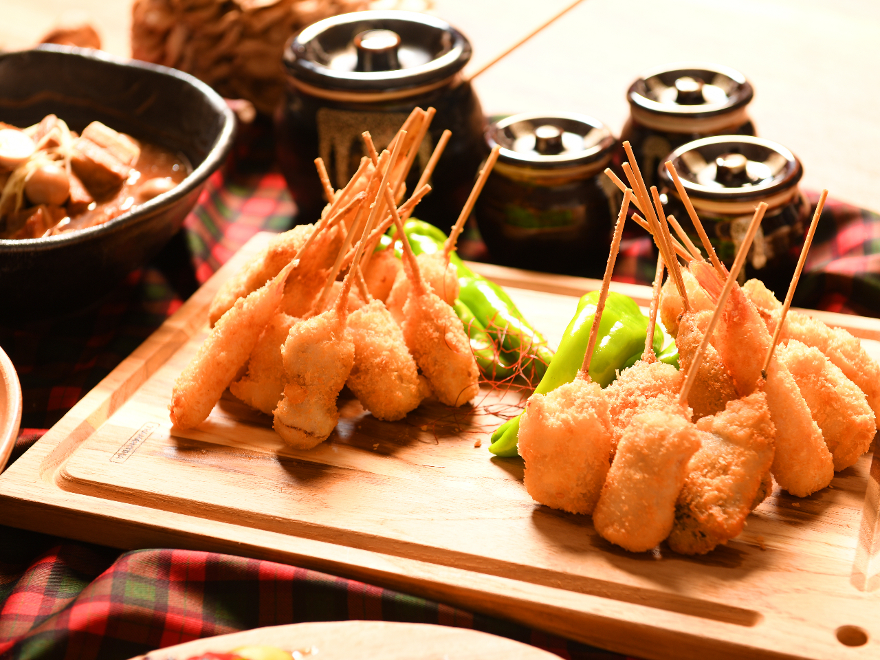 秋の夜にぴったりの贅沢ビュッフェが期間限定で登場。ライブキッチンで揚げたてをお届けする「串カツ」、和洋多彩な前菜・メイン料理に、20種以上のスイーツも勢ぞろい♪小学生未満のお子様は0円!