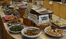 | 飲食施設 | ◆レストランでは、高原野菜や鶏肉を使った料理を1000円のバイキングで楽しめます。 ◆パン工房では、バターたっぷりの「塩パン」、ほんのりミルク味のバターを織り込んだ「黄金の柱」が人気。新商品の「高原野菜のタルティーヌ」は野菜がどっさり載ってます! ◆フードコーナーでは、よもぎをたっぷり使った「よもぎうどん」や「焼きもち」。ソフトクリームや高原野菜やモチを使った「ピザ」も人気商品。ソフトクリームは定番のバニラの他、久万高原町産原料も使った「久万茶」「トマト」「リンゴ」「ブルーベリー」といろいろな味を取りそろえております。 |