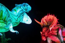 夜の森に潜むライトアップ恐竜の迫力を観るチャンス!