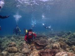 初心者体験ボートで30分ぐらい離れている無人島に行きました。3mぐらいの浅いところで息の練習をしたら、ナマコを発見しました。もっと深いところに行ったら、魚とサンゴがたくさんいました。教え方もとても丁寧で、水中の写真も撮ってくれました。きれいな海でのダイビングを初経験は大切な思い出になりました。