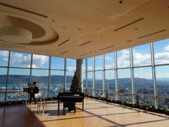 四国で一番高い建築物、という事で、30階の無料展望スペースに行きました。少しかすんでいたのが残念でしたが、晴れていたので、遠く、高松市内の全景から、瀬戸内海まで、碧い海と青い空、緑の山々が綺麗な景色を堪能できました。眺望を楽しんだ後は、ホール棟に移動して、お食事。高松拉麺築港(たかまつラーメンポート)と銘打ったラーメン街やビュッフェスタイルのお店などがあって、楽しげでした。
