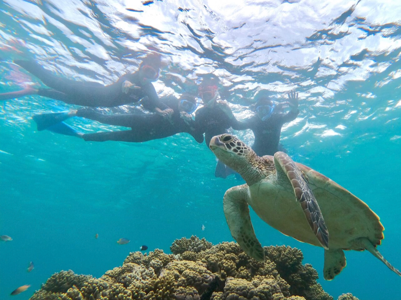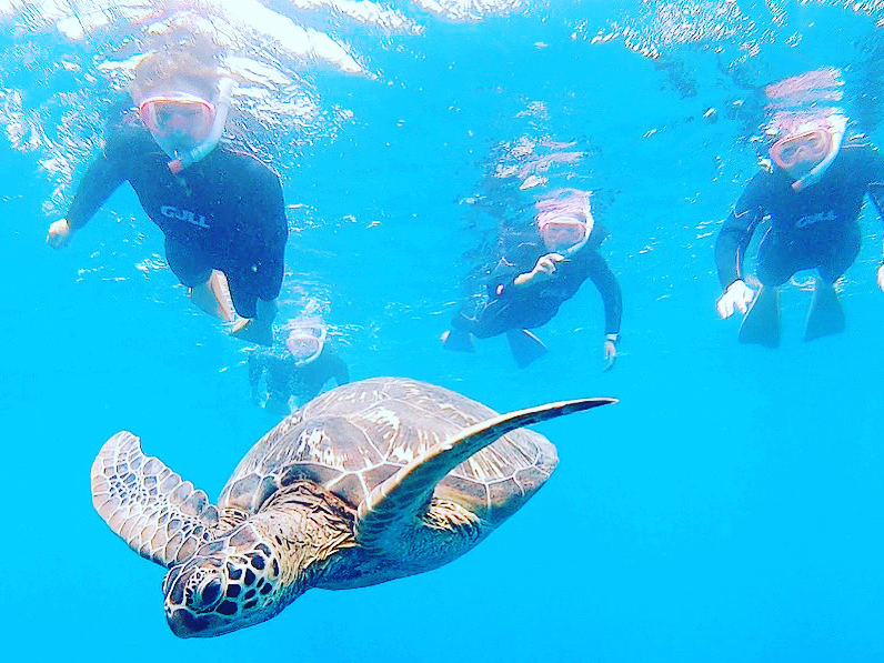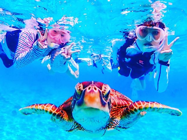 さあシュノーケリング!すぐに綺麗な魚やサンゴ、ウミガメが目に飛び込んできますよ♪