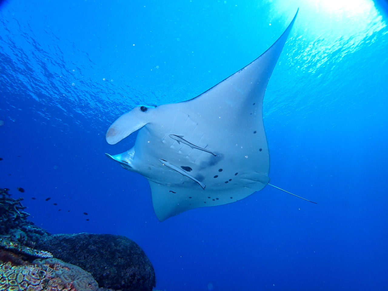 ・ポイントまで30分、まったり幻の島上陸、わくわくのマンタ又はウミガメシュノーケリング