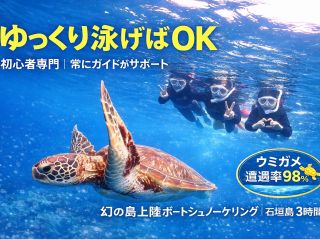 【体験ダイビング&シュノーケリング】ウミガメと泳ぐ夢のような体験を×石西礁湖×幻の島上陸も|石垣島7時間 ・写真無料・手ぶらでOK|前日予約OK
